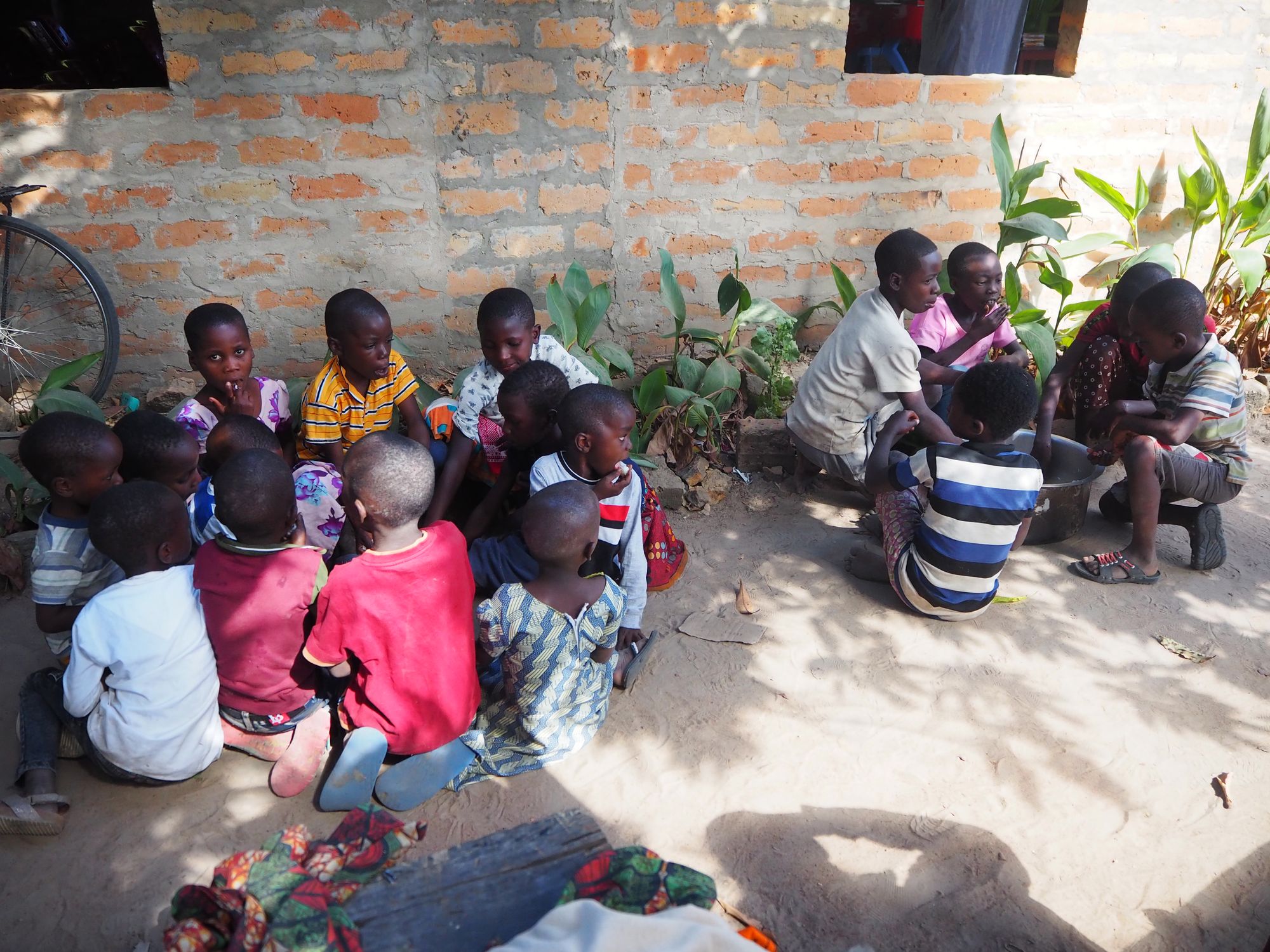 On Sunday, a church choir was visiting from Sikonge. This was a special day for the church, and the women were up early toting water and making rice and beans. This was why church started so late, as we were waiting for the choir to arrive. The choir was an experience unto itself. After the first session, we stopped for lunch (Tanzanians eat lunch around 2 pm). The women served the guests first on individual plates (us and the choir). They walked around with a big bucket to rinse everyone's hands. All the children sat on the ground in a huddle, and the women set a big tray of beans and rice for the kids to eat with their hands. It was the same thing for all the village men, except they weren't on the ground.